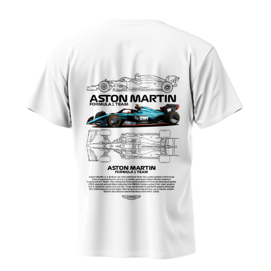 Accelerate style with the Aston Martin Formula 1 Car Graphic T-shirt, featuring technical blueprint art and a dynamic side profile of the stunning F1 race car. Crafted from 240 GSM, 100% combed cotton, this tee boasts a no-fade DTF print, bio-washed softness, and pre-shrunk durability—available in regular and oversize unisex fits. Perfect for motorsport enthusiasts and collectors who appreciate performance and design.