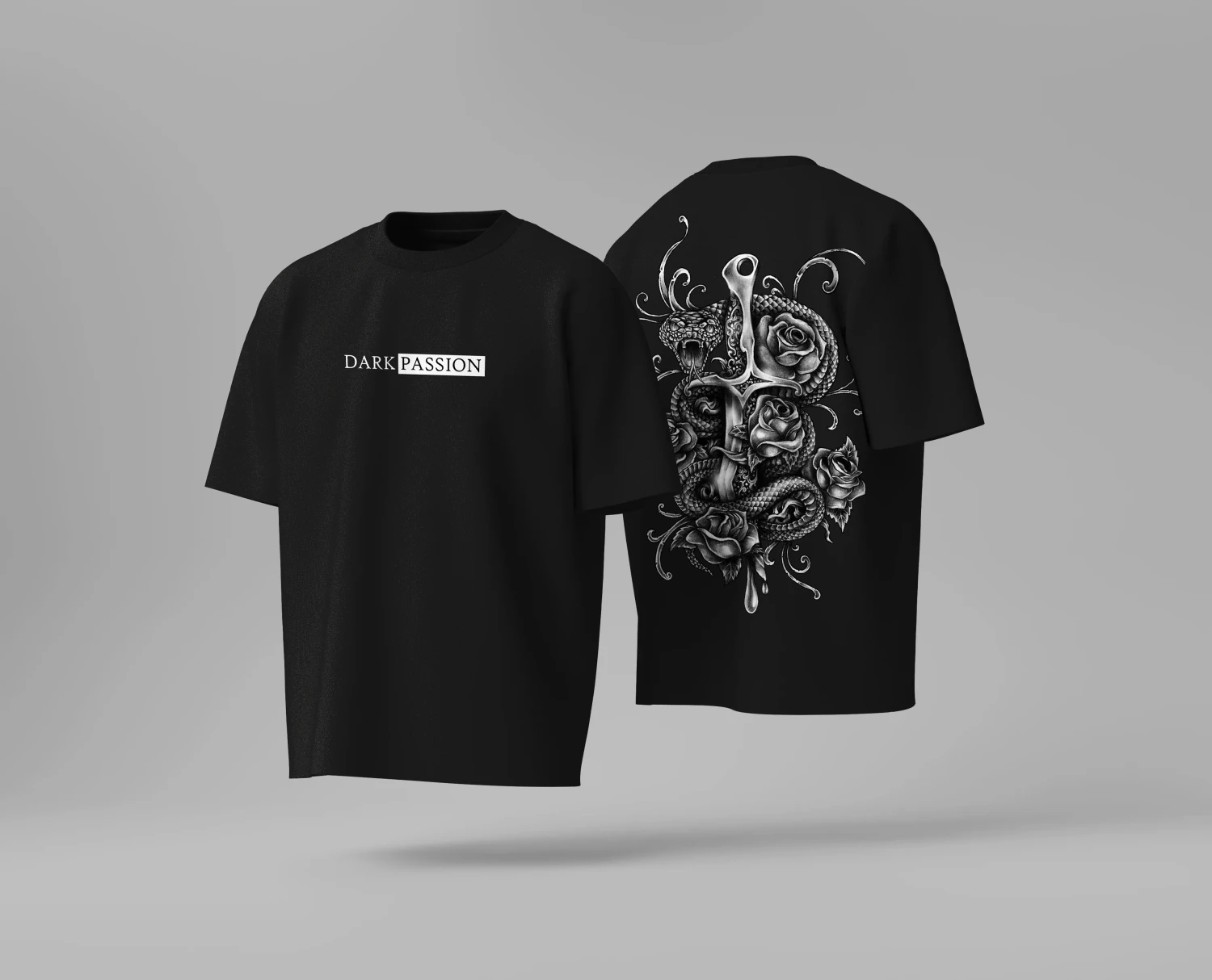 Embrace your style with the "Dark Passion" tee, featuring a clean chest logo and a stunning, large-scale gothic graphic on the back. This intricate design, blending snakes, roses, and a dagger, is printed on heavyweight 240GSM combed cotton for a premium, structured feel. The durable DTF print ensures the tattoo-style artwork remains sharp, while the bio-washed, pre-shrunk finish guarantees a perfect fit for any darkwear or alternative wardrobe.