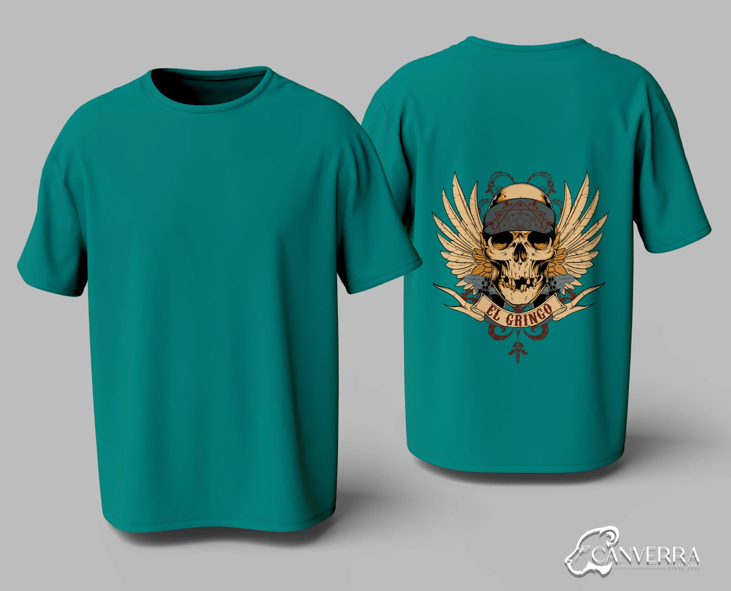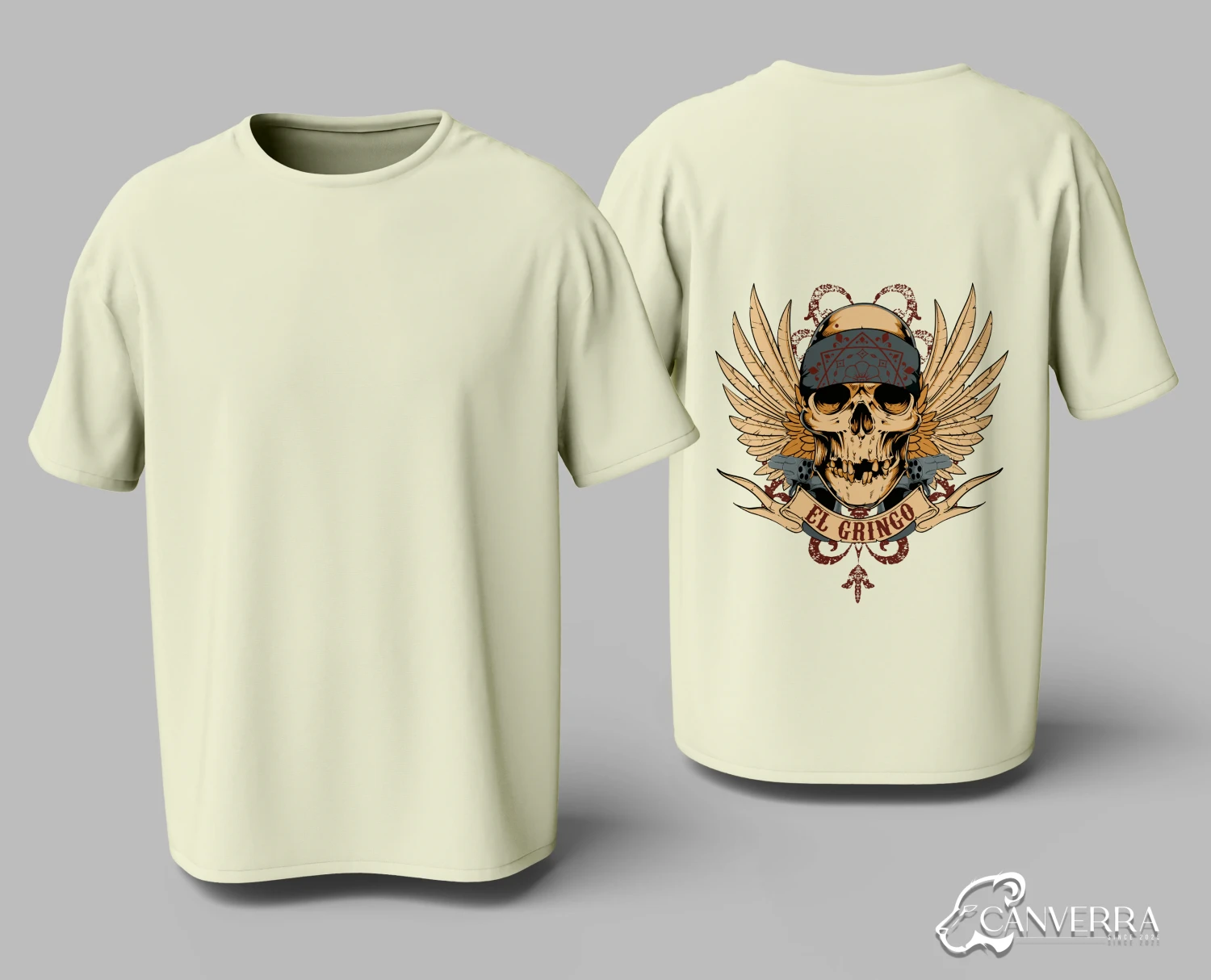 Unleash your inner outlaw with the "El Gringo" winged skull graphic tee. This vintage-inspired back print is a bold statement of rebellion and freedom, perfect for the modern-day rider or rock enthusiast. Crafted from premium, heavyweight 240GSM combed cotton, it delivers superior comfort that’s built to last.