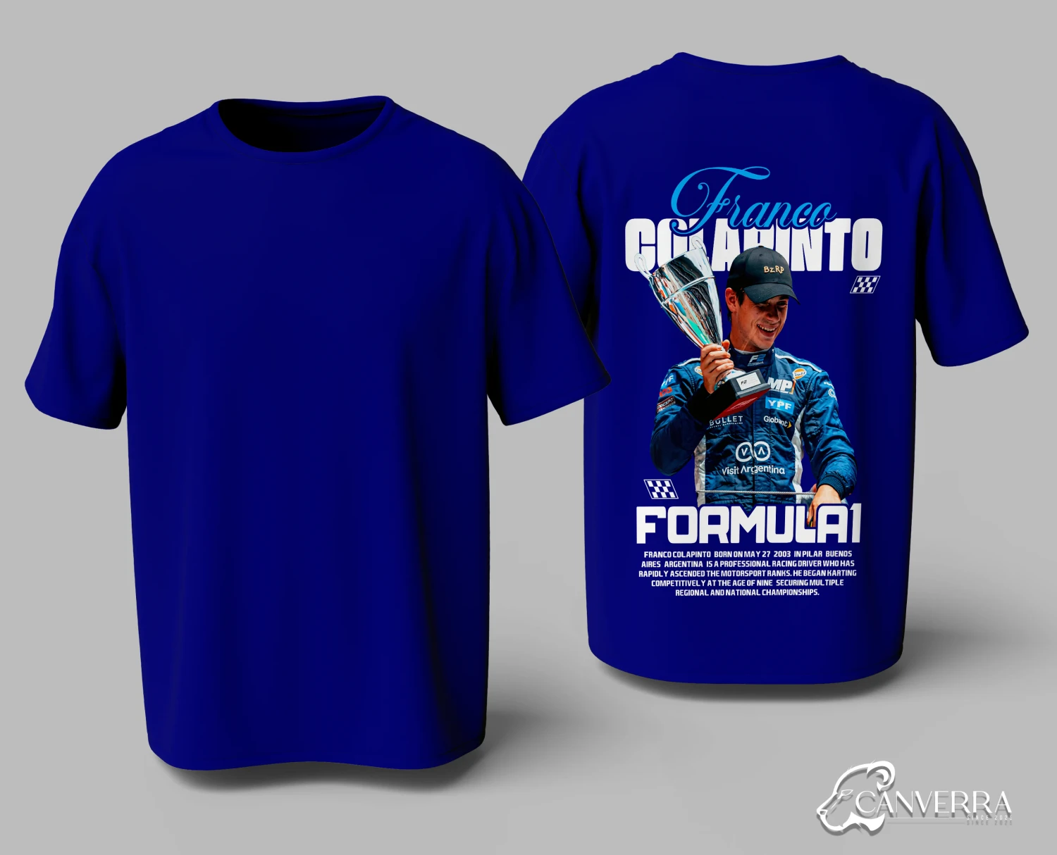 Champion's Tribute: Features a bold back print celebrating F1 driver Franco Colapinto's success.