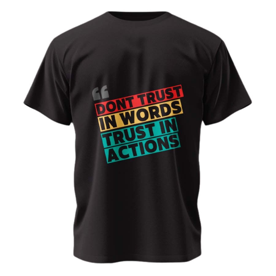 Motivate with every move in this "Don’t Trust in Words, Trust in Actions" graphic tee. Crafted from super-soft 240 GSM combed cotton, it features a durable DTF print that won't fade. Engineered bio-washed and pre-shrunk for lasting freshness and comfort in regular and oversize unisex fits.