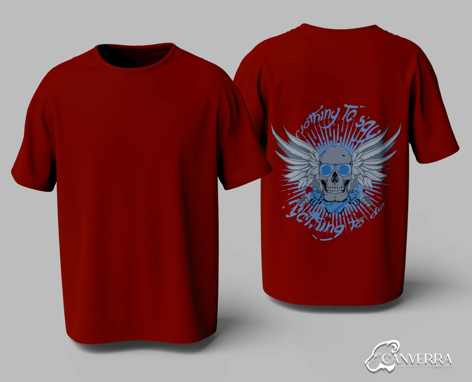 Edgy Back Graphic: Features a striking winged skull with sunglasses for a bold, rebellious statement.