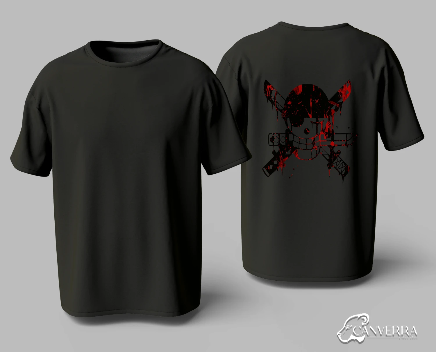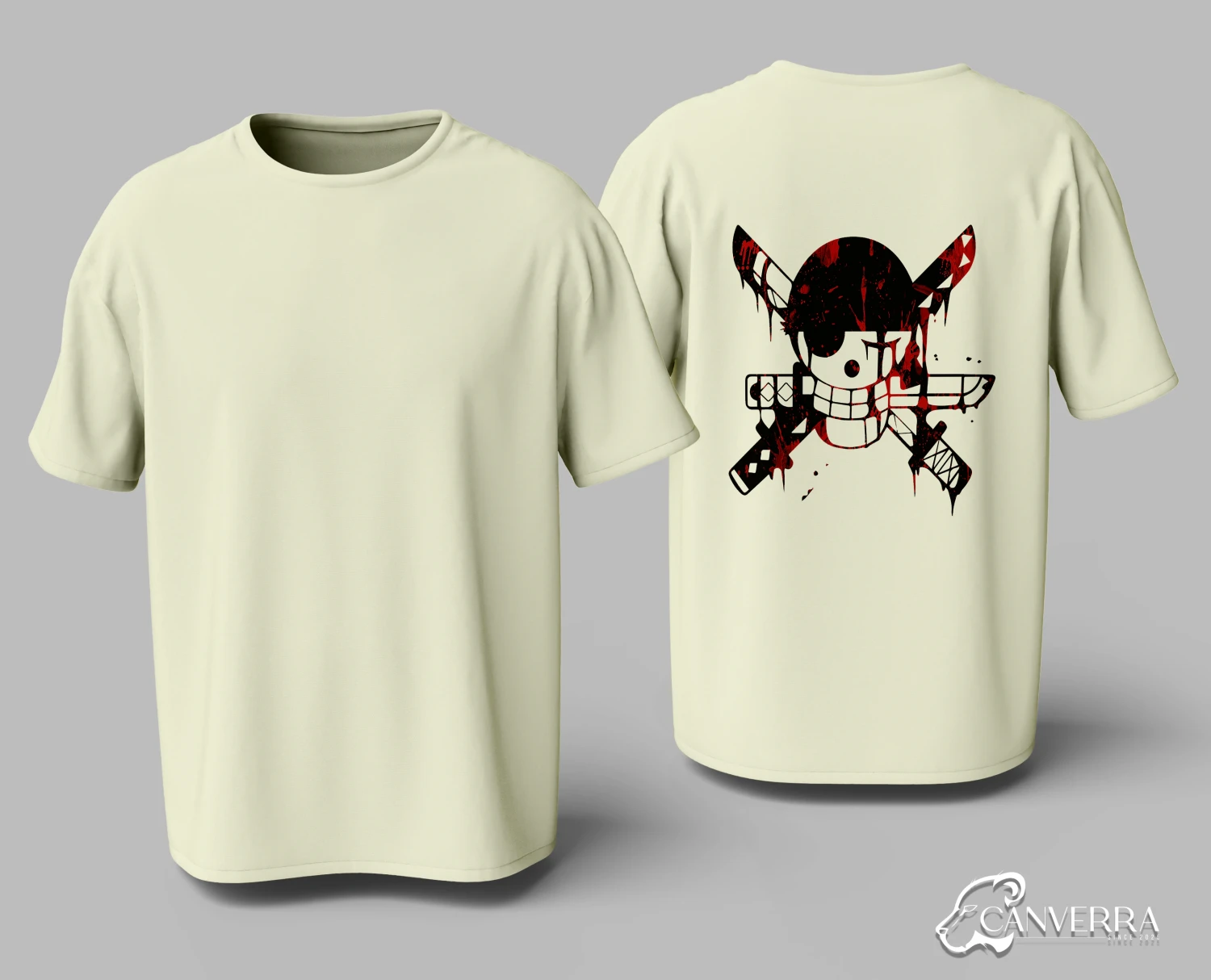 Iconic Back Graphic: Features a bold, distressed print of Roronoa Zoro's signature three-sword Jolly Roger.