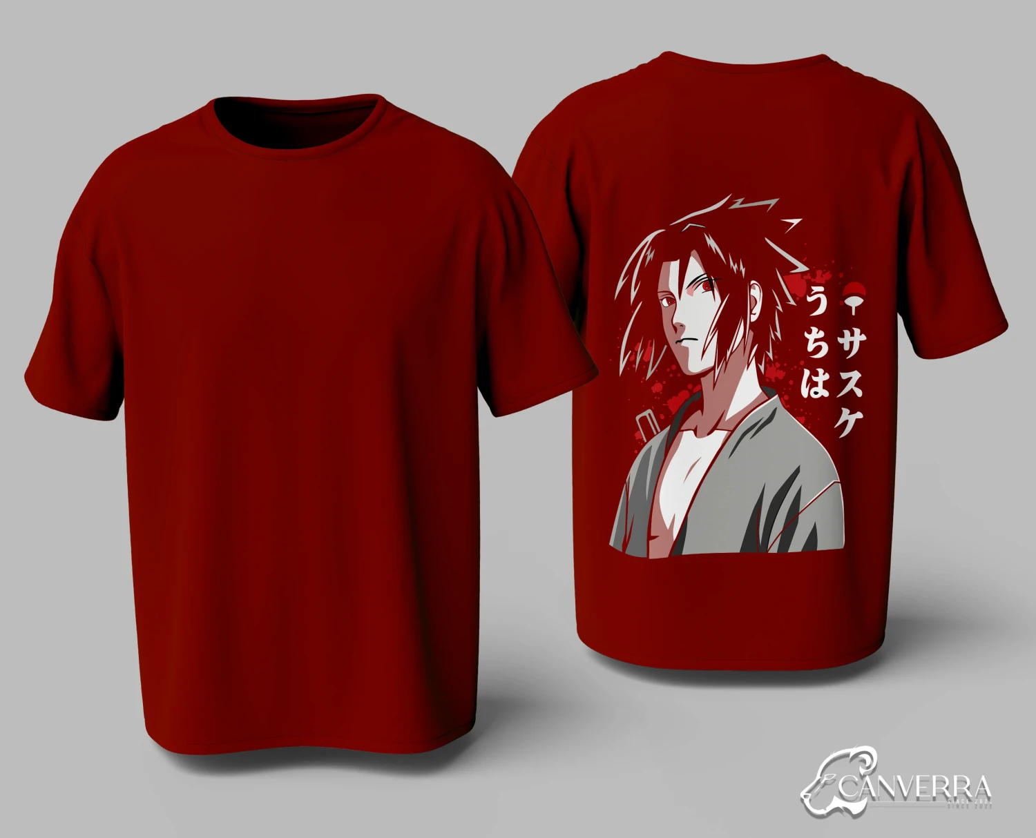 Iconic Back Graphic: Features a high-detail DTF print of Sasuke Uchiha with his powerful Sharingan and Uchiha clan text.
