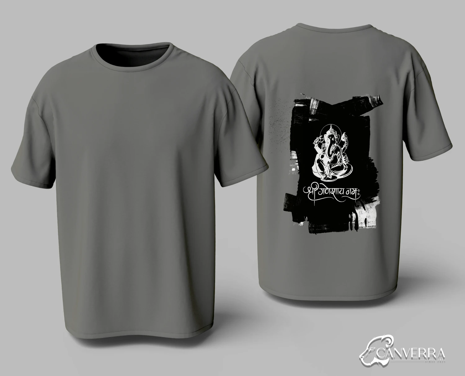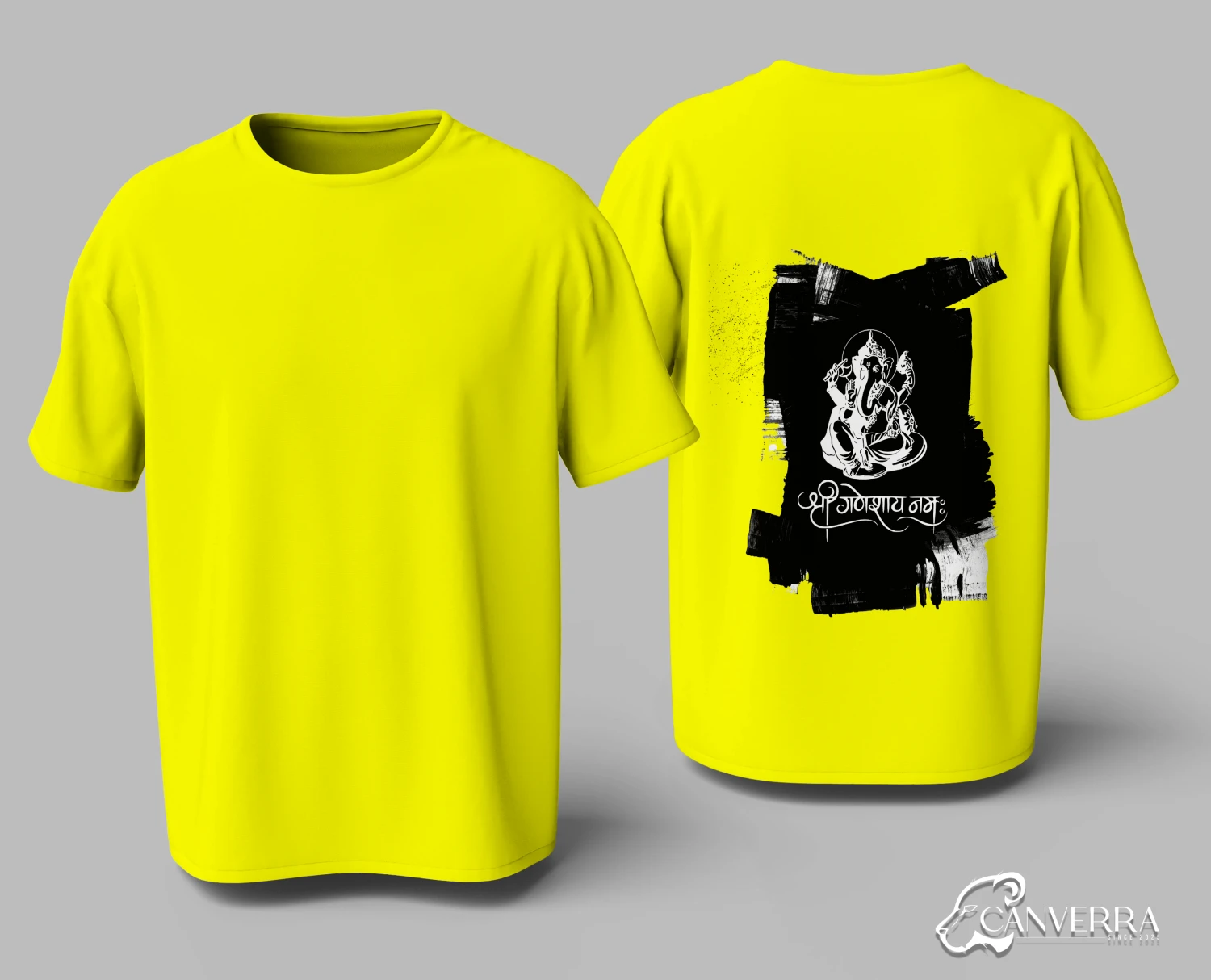 Artistic Back Print: Features a stylized Ganesha graphic with "Shri Ganeshay Namah" calligraphy.