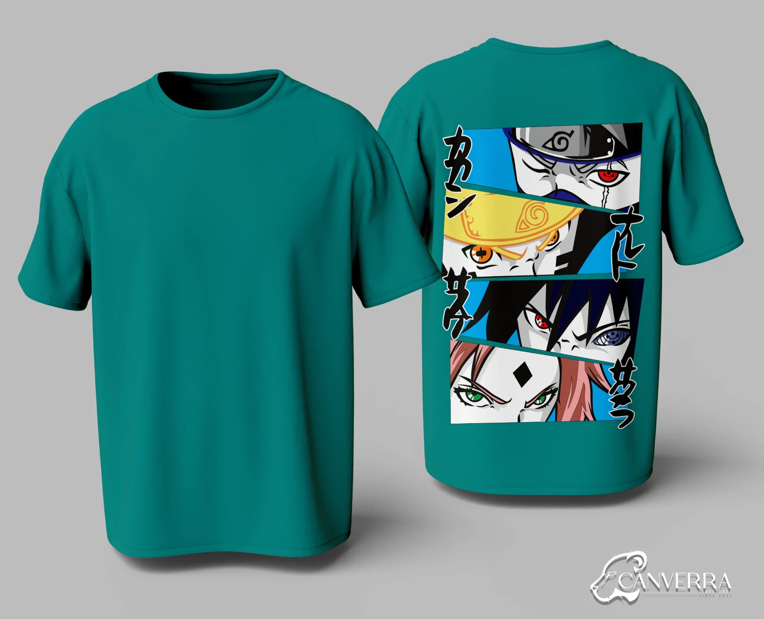 Iconic Team 7 Graphic: Features a vibrant, high-detail back print of Naruto, Sasuke, Sakura, and Kakashi's powerful eyes.