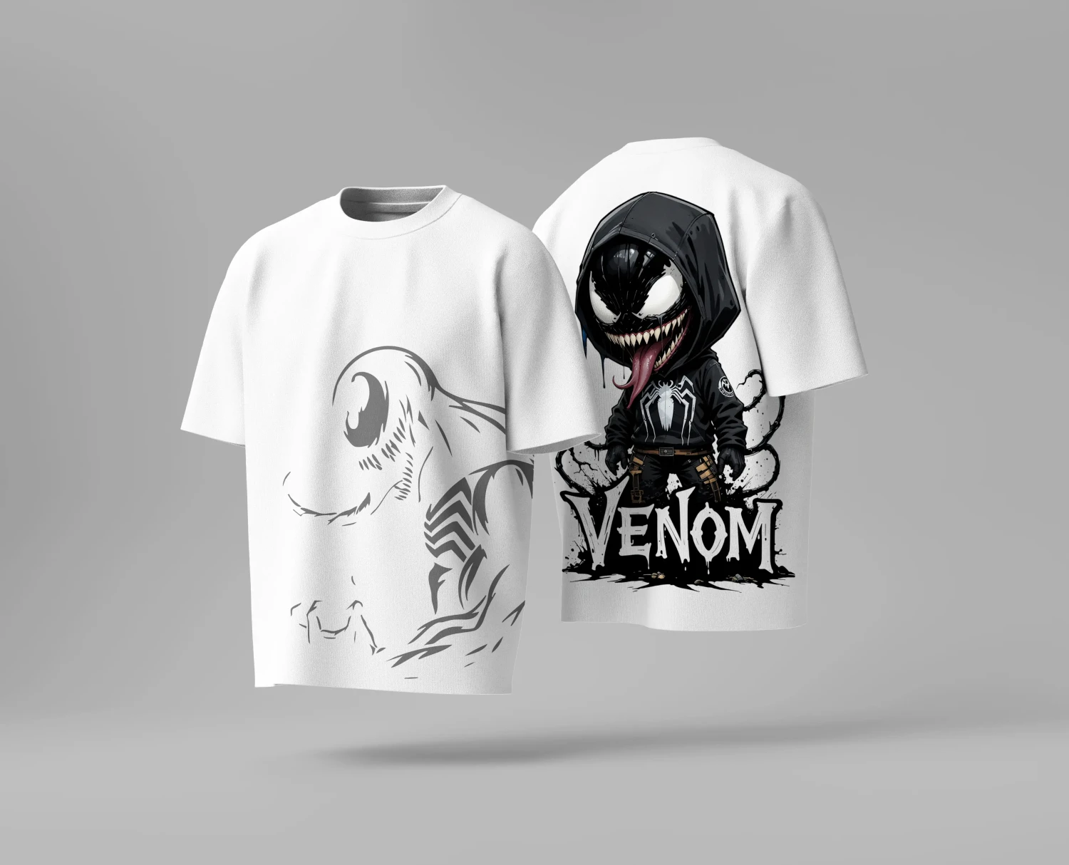 Unleash your inner anti-hero with this epic, dual-design Venom tee. This shirt features a classic, stylized Venom graphic on the front and a bold, full-color chibi Venom in a hoodie on the back. Crafted from premium 240GSM combed cotton with a durable DTF print, this tee offers superior comfort and lasting style for any Marvel fan. The bio-washed, pre-shrunk finish ensures a perfect unisex fit right from the box.