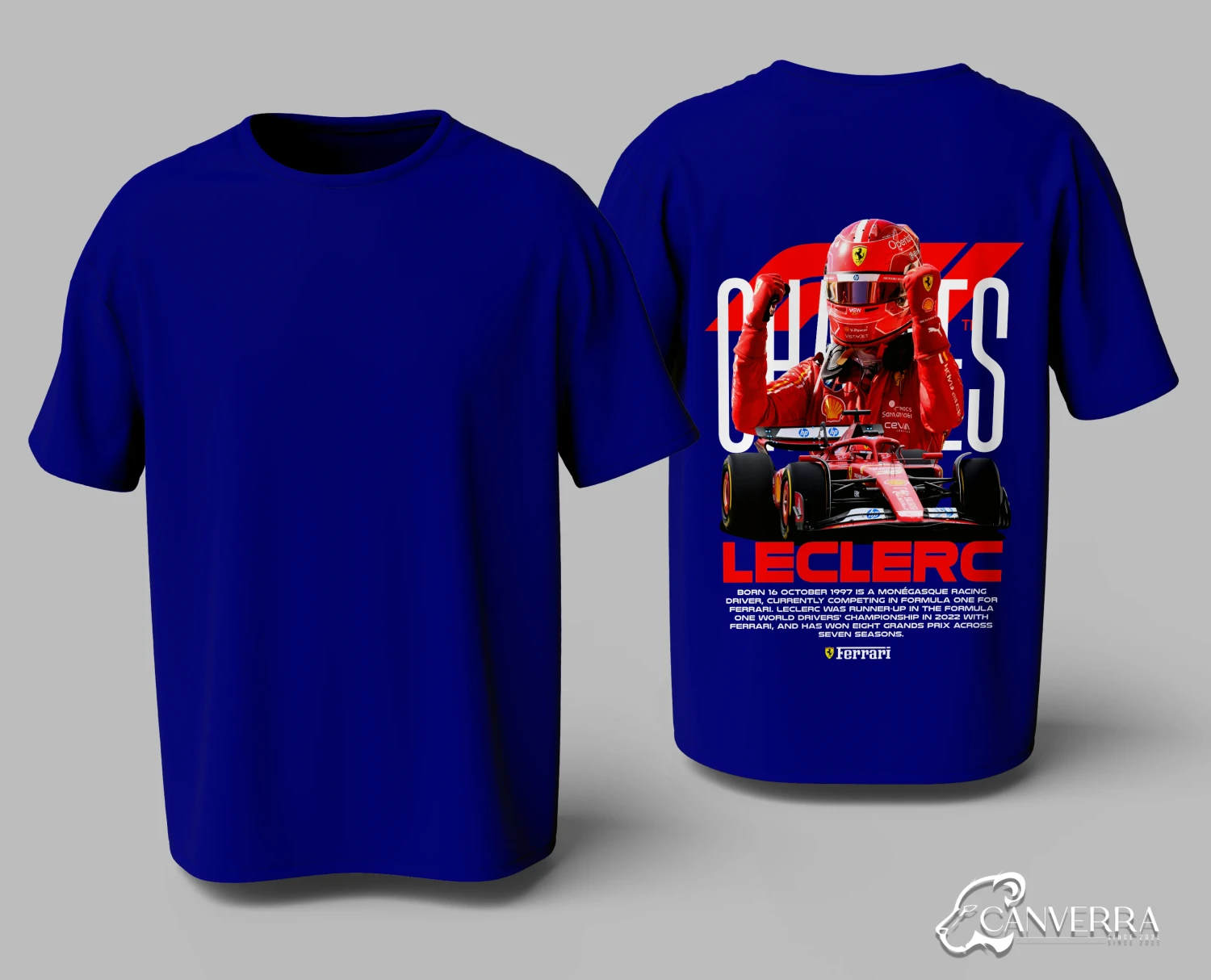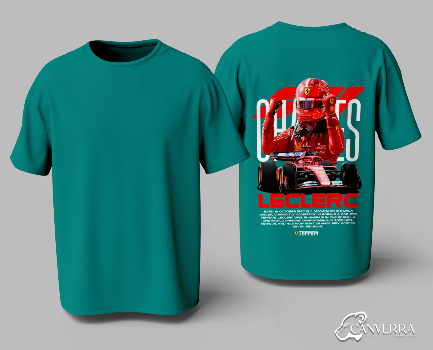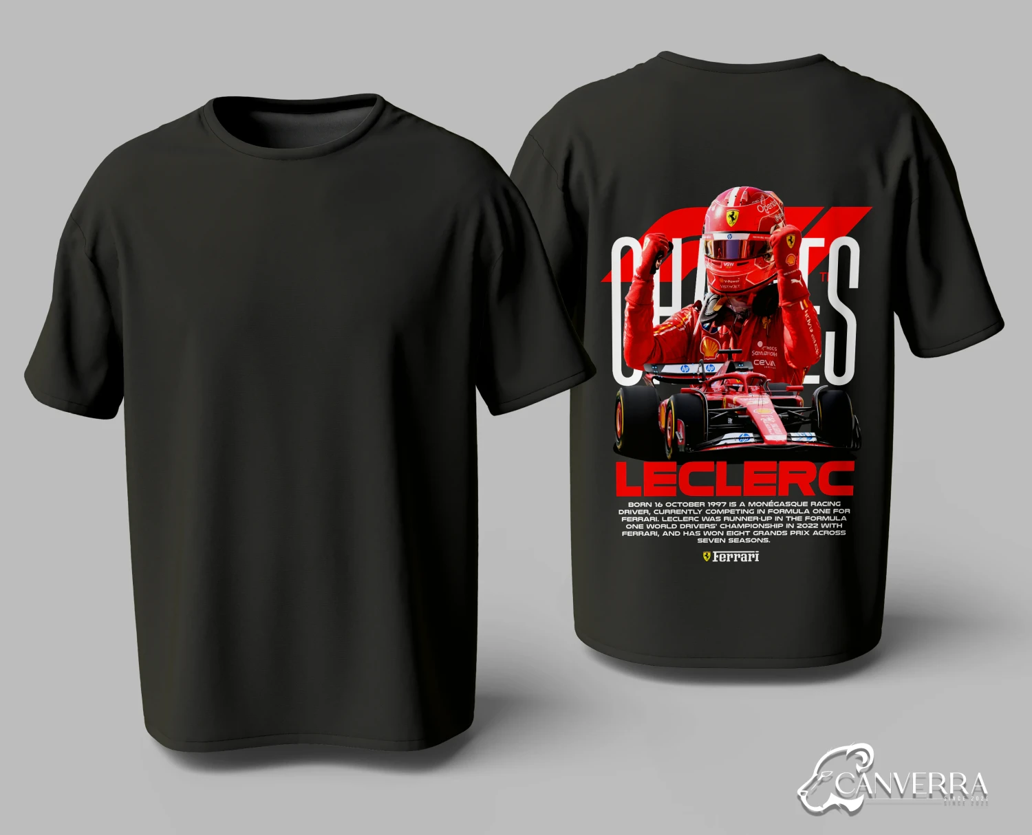 Driver Tribute Design: A striking back print celebrating Ferrari's star driver, Charles Leclerc.