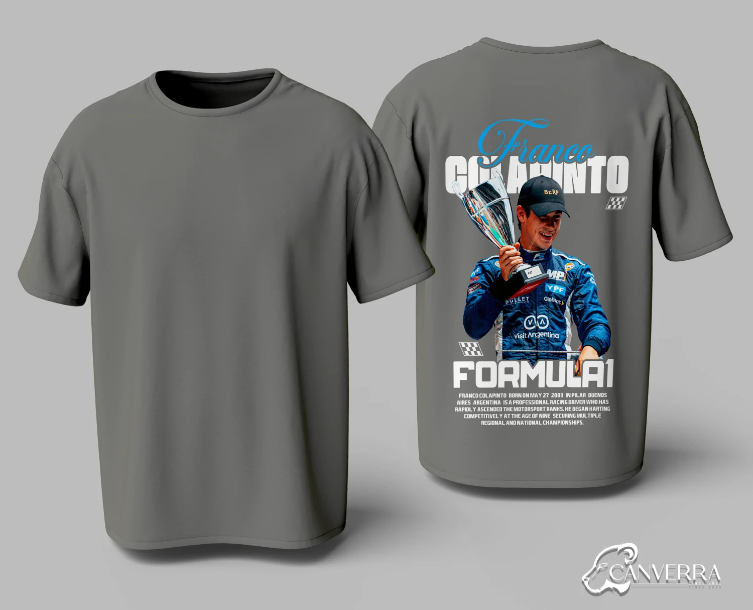 Champion's Tribute: Features a bold back print celebrating F1 driver Franco Colapinto's success.