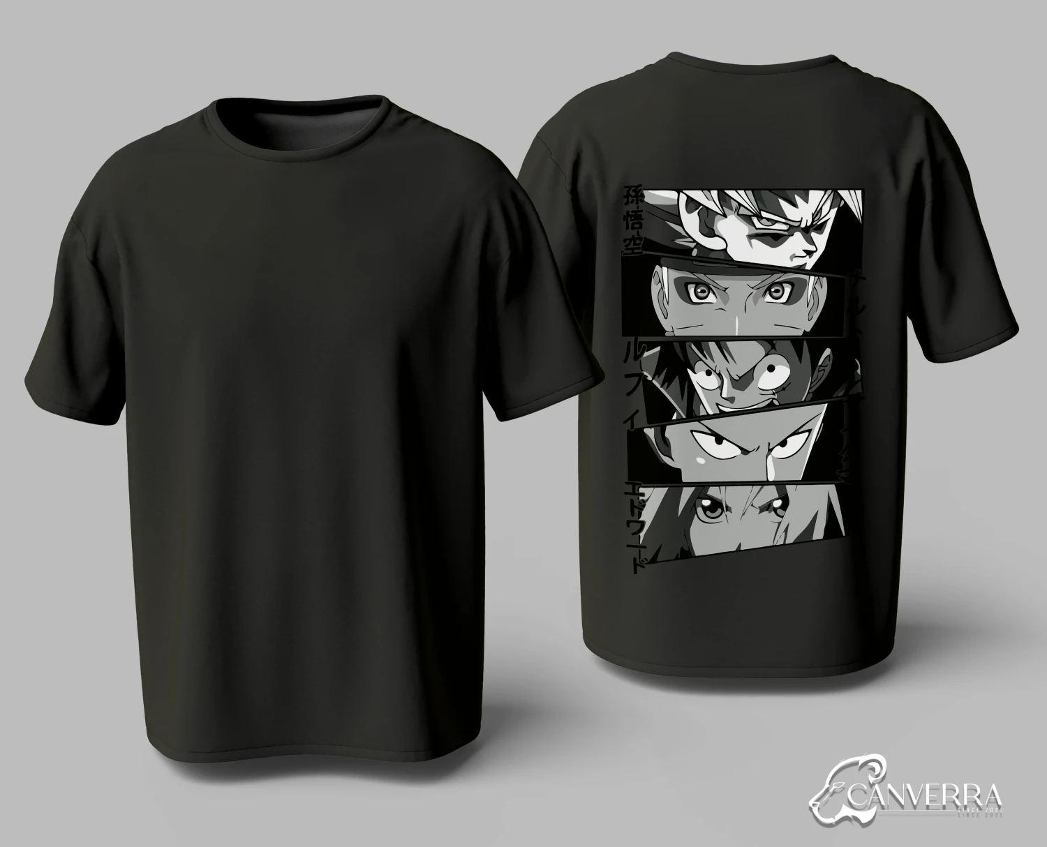 Legendary Anime Eyes Graphic: Features high-detail black and white DTF prints of iconic anime character eyes.