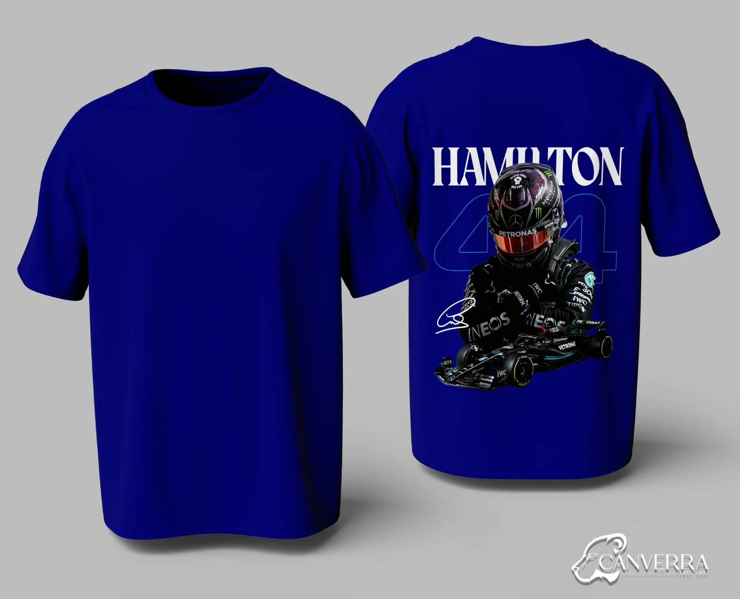 Pay tribute to a racing legend with our Lewis Hamilton F1 T-shirt. This tee features a stunning, high-detail back print of the seven-time world champion in his Mercedes gear, complete with his iconic number 44. Expertly crafted from premium 240GSM, 100% combed cotton, it’s the ultimate way for the LH Army to show their support in superior comfort and style.