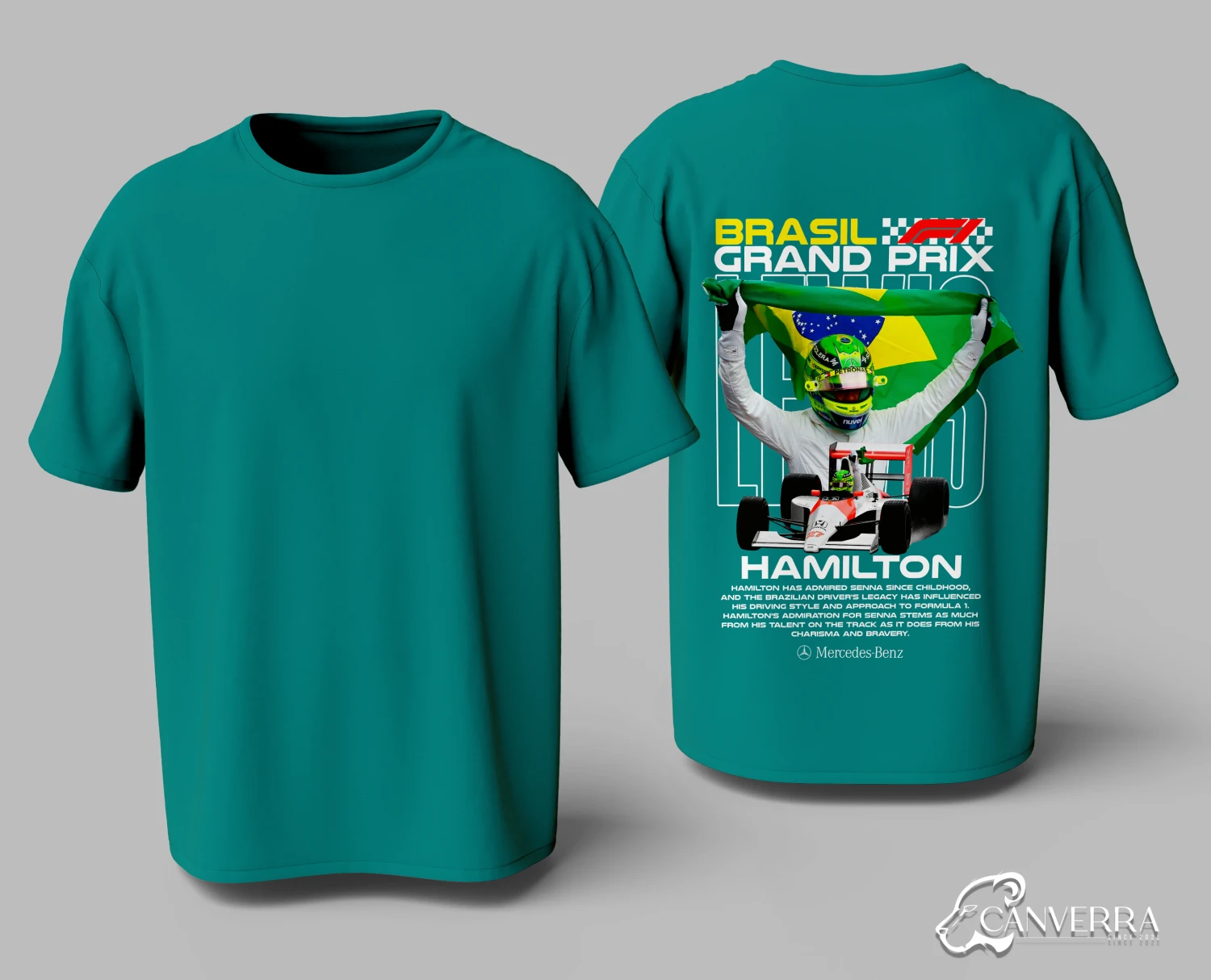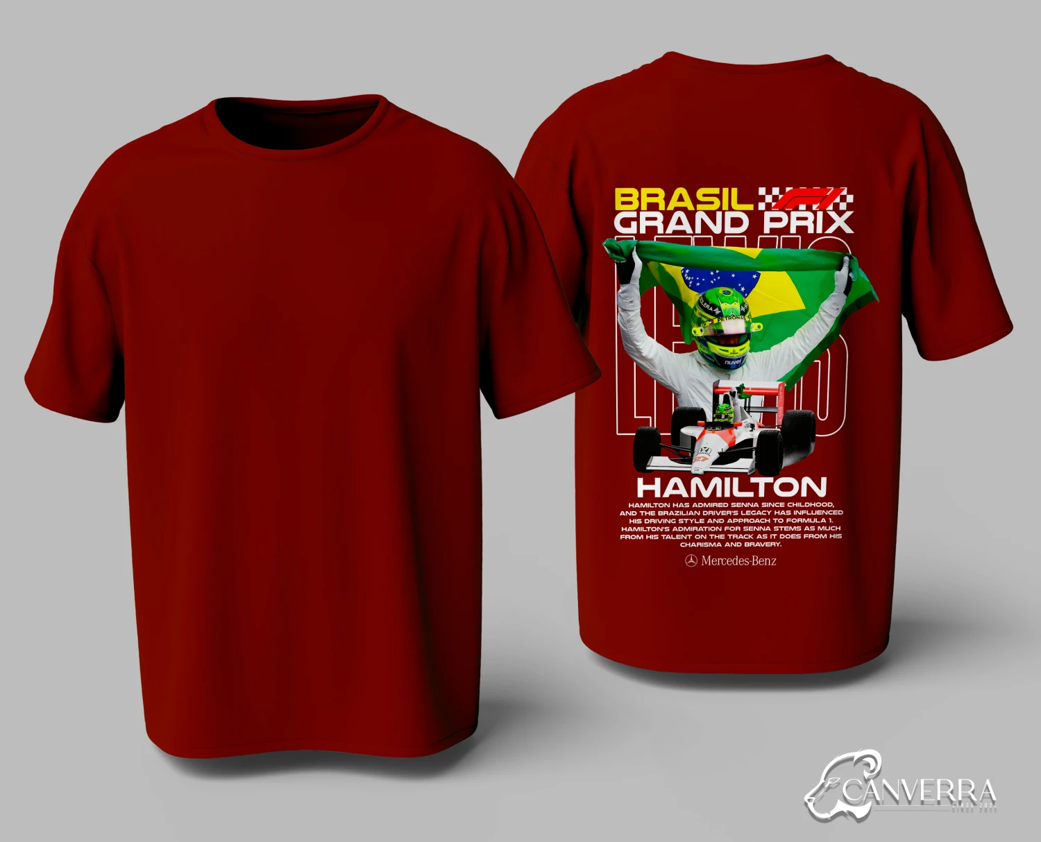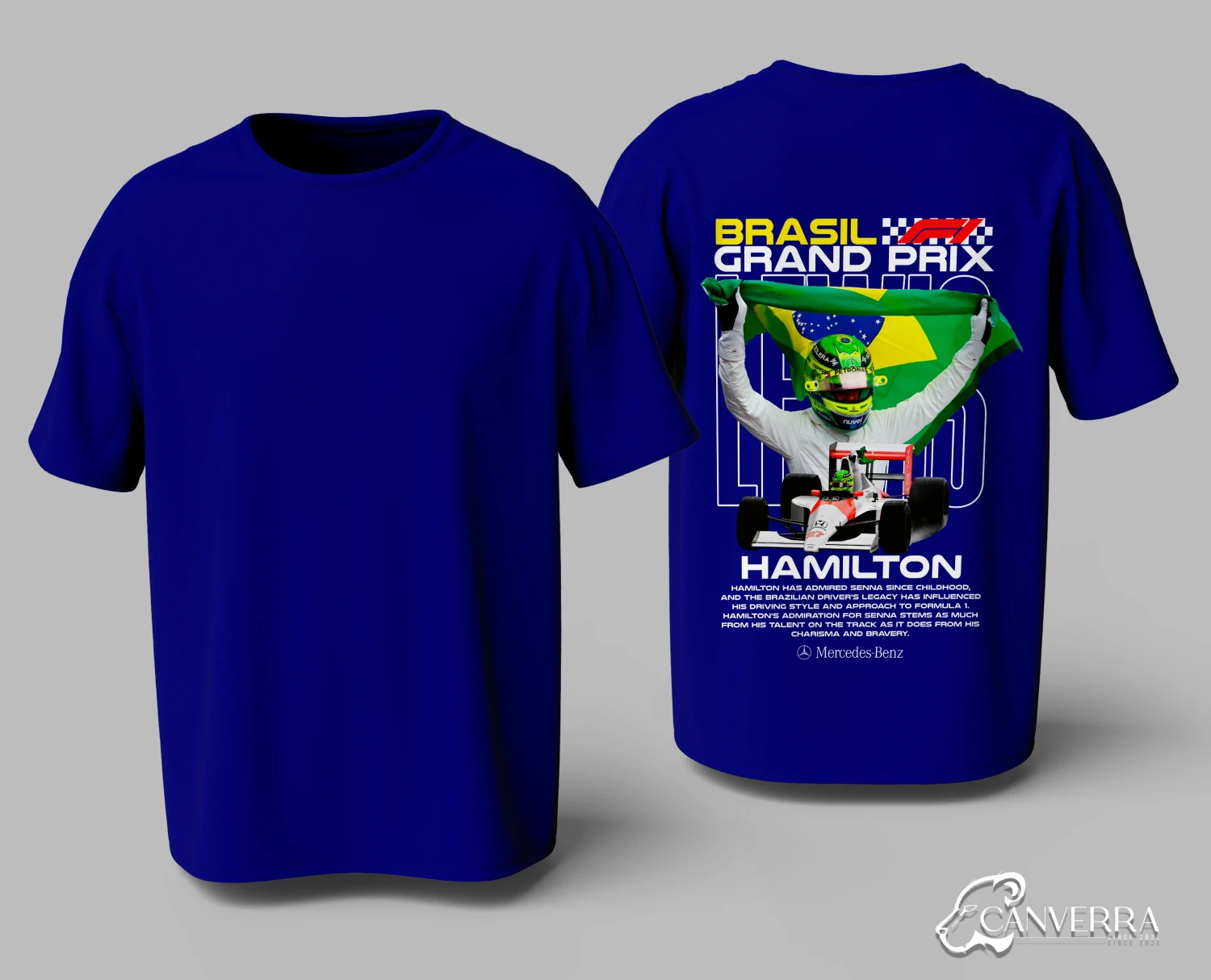 Iconic Tribute Design: Celebrates Lewis Hamilton's historic Brasil Grand Prix moment with a detailed back print.