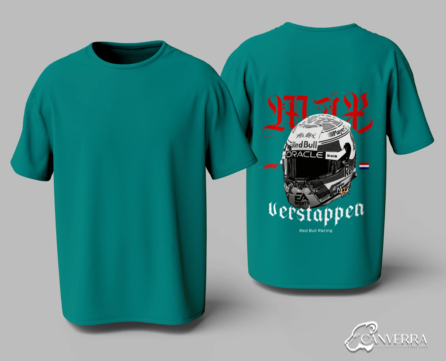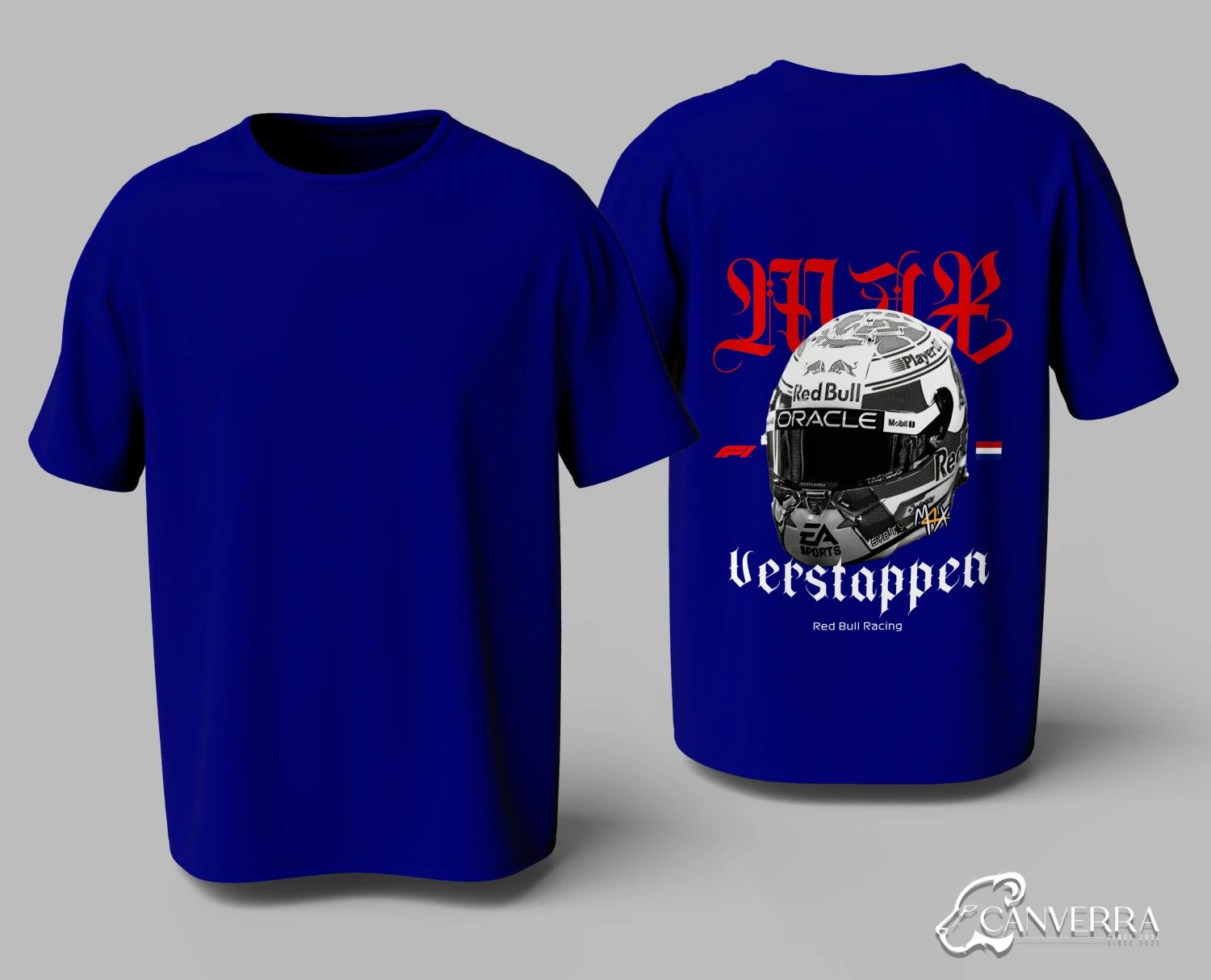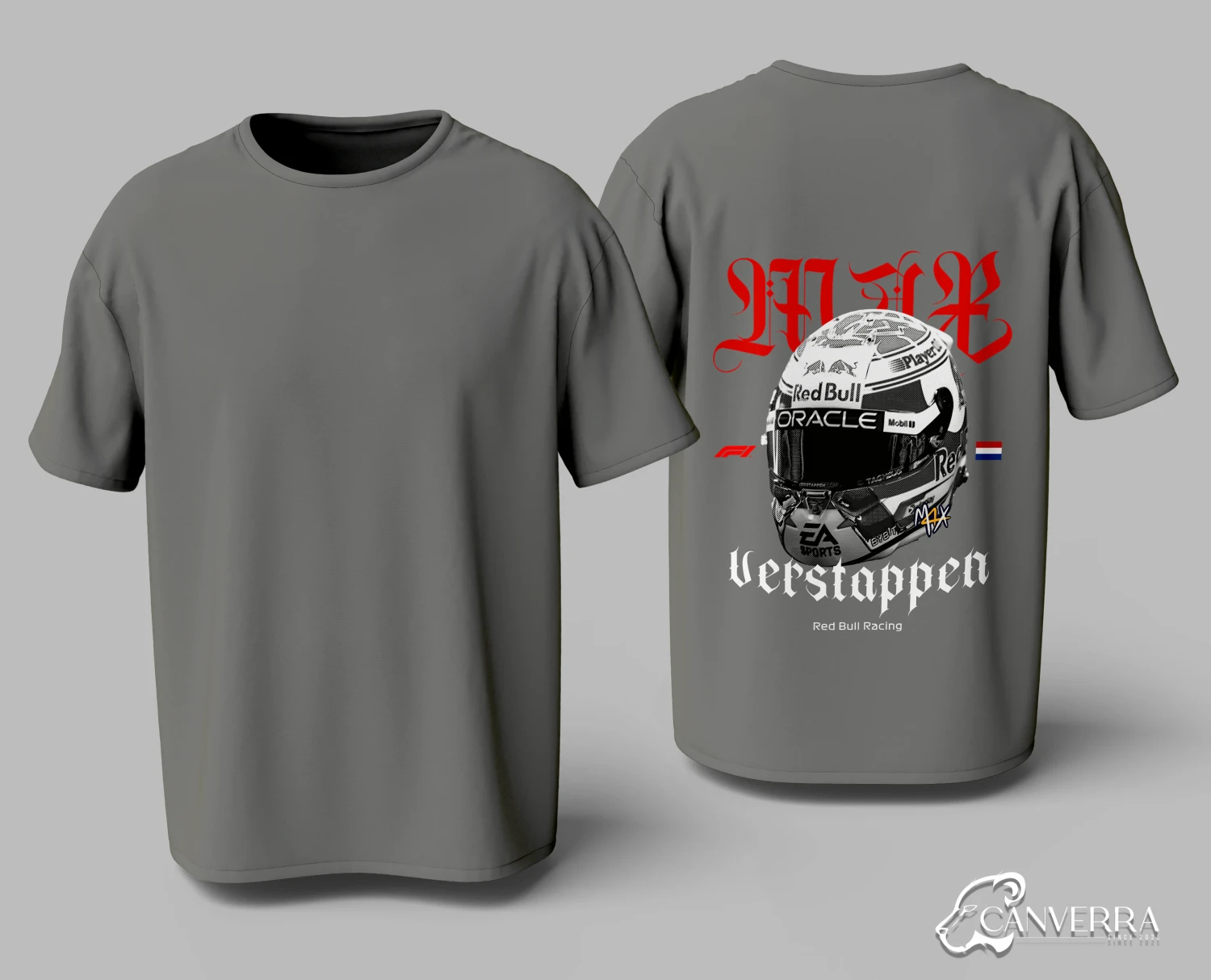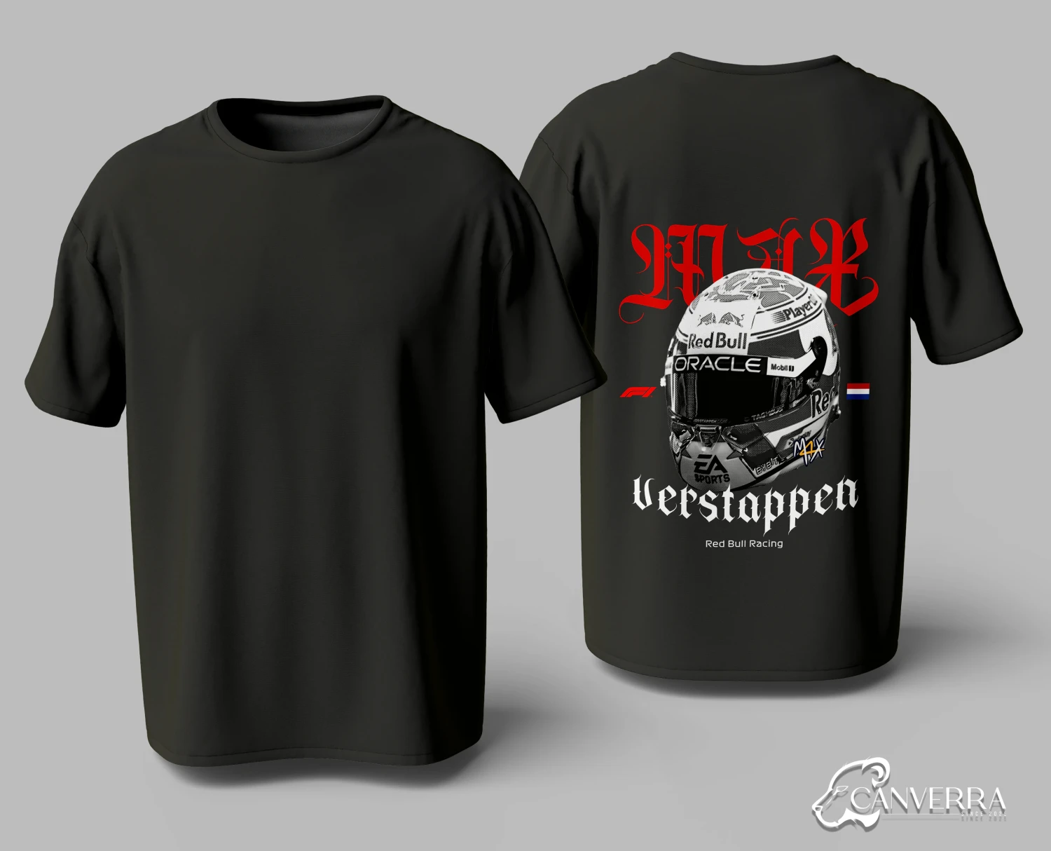 Unleash the champion's spirit with our exclusive Max Verstappen graphic tee. Featuring a bold, gothic-style back print of his iconic helmet, this shirt celebrates the Red Bull Racing star in commanding fashion. Crafted from premium 240GSM combed cotton, it offers a superior heavyweight feel, making it the ultimate apparel for the dedicated fan.