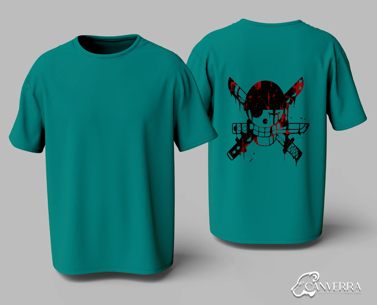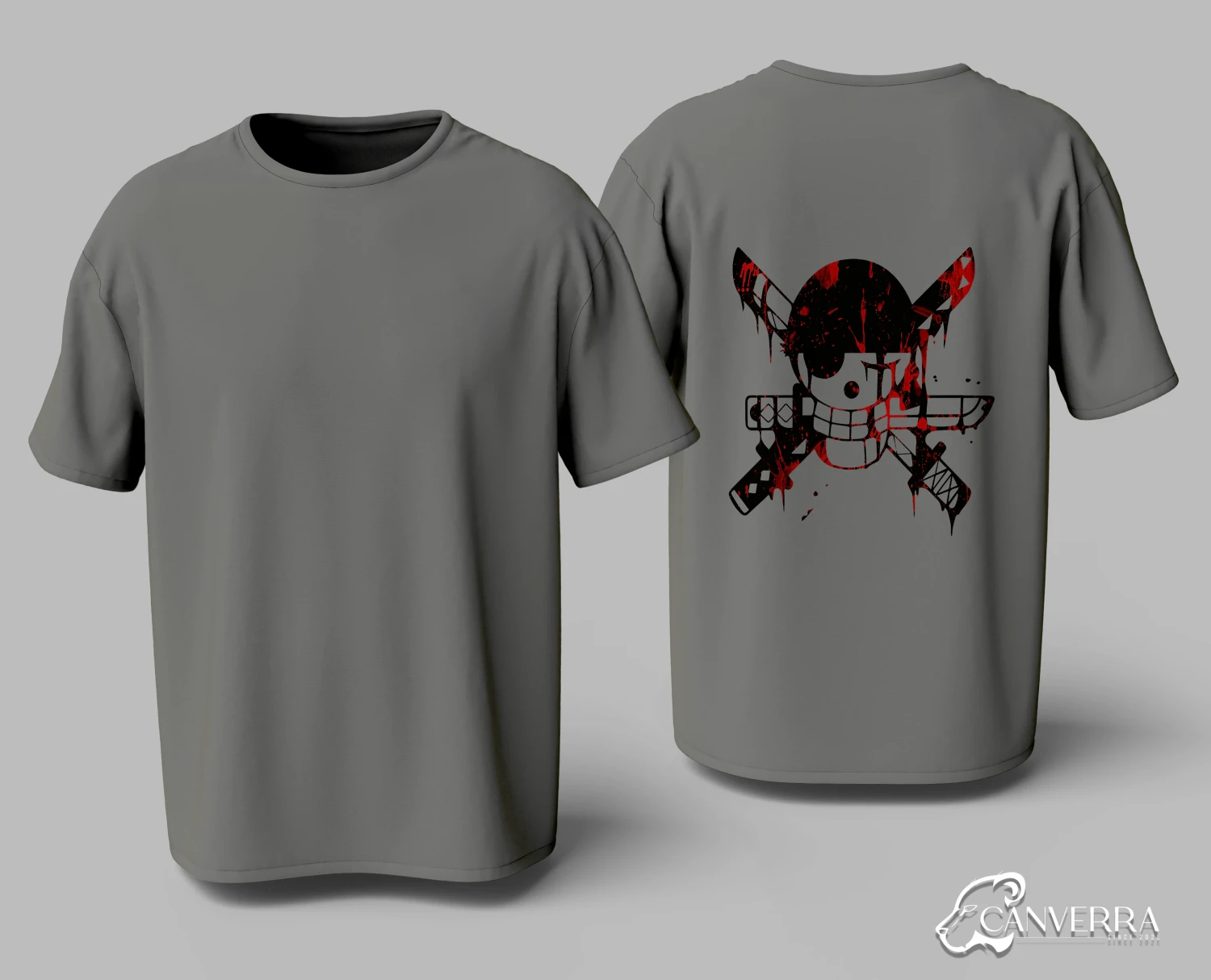 Iconic Back Graphic: Features a bold, distressed print of Roronoa Zoro's signature three-sword Jolly Roger.