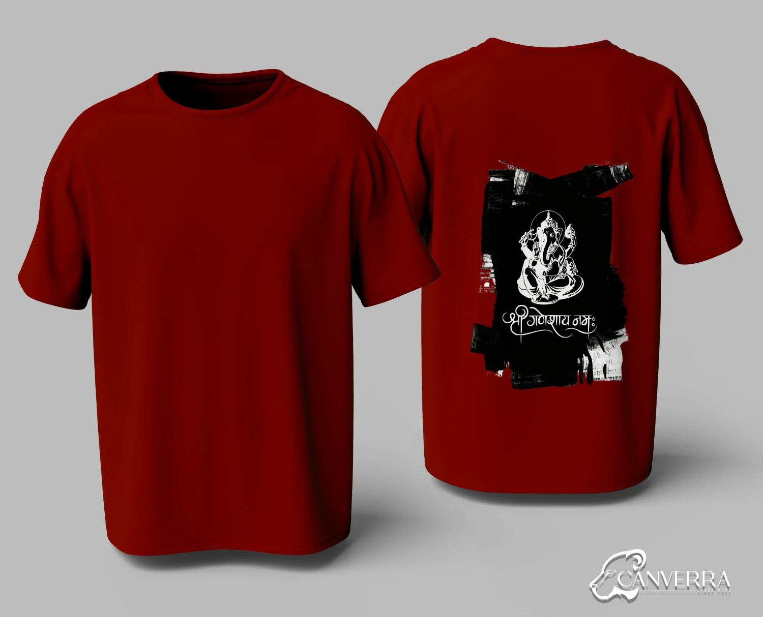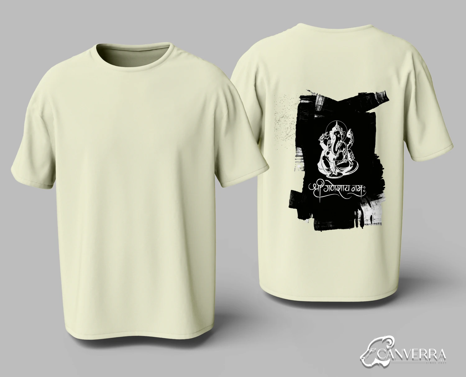 Artistic Back Print: Features a stylized Ganesha graphic with "Shri Ganeshay Namah" calligraphy.