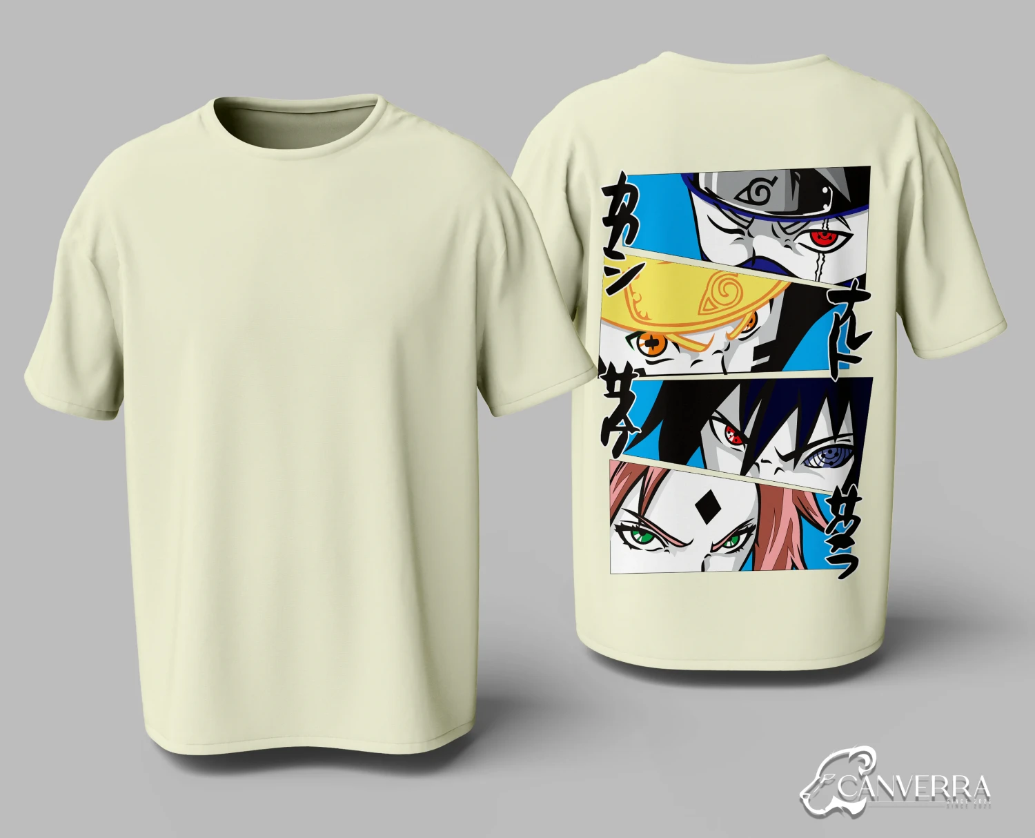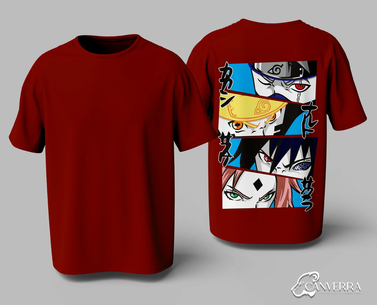 Celebrate the legendary bonds of Team 7 with this exclusive Naruto graphic tee. Featuring a stunning back print showcasing the iconic eyes of Naruto, Sasuke, Sakura, and Kakashi, this shirt is crafted from premium 180GSM, 100% combed cotton for ultimate comfort. The bio-washed, pre-shrunk fabric ensures a perfect, long-lasting fit, making it a must-have for any shinobi's collection.