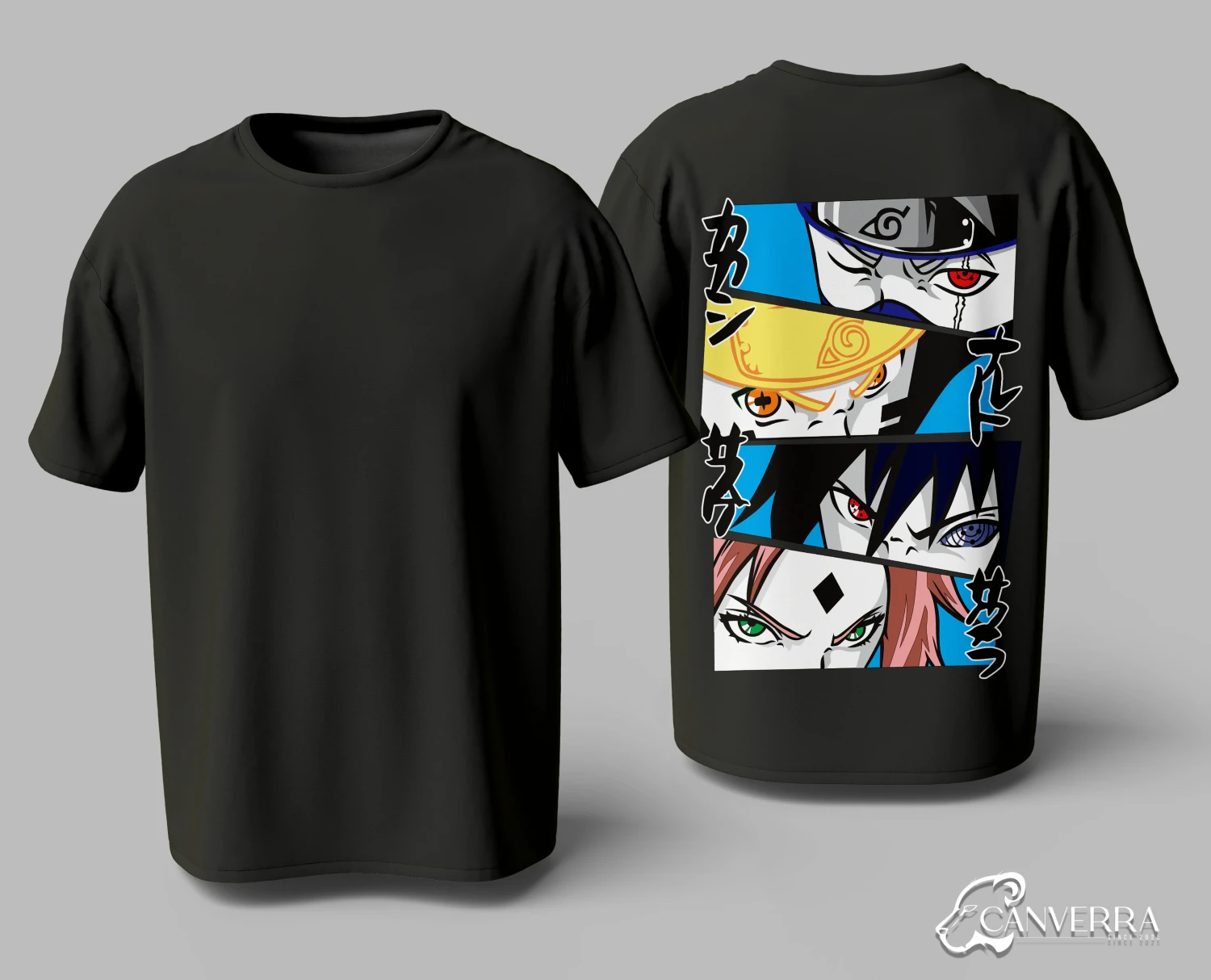 Iconic Team 7 Graphic: Features a vibrant, high-detail back print of Naruto, Sasuke, Sakura, and Kakashi's powerful eyes.